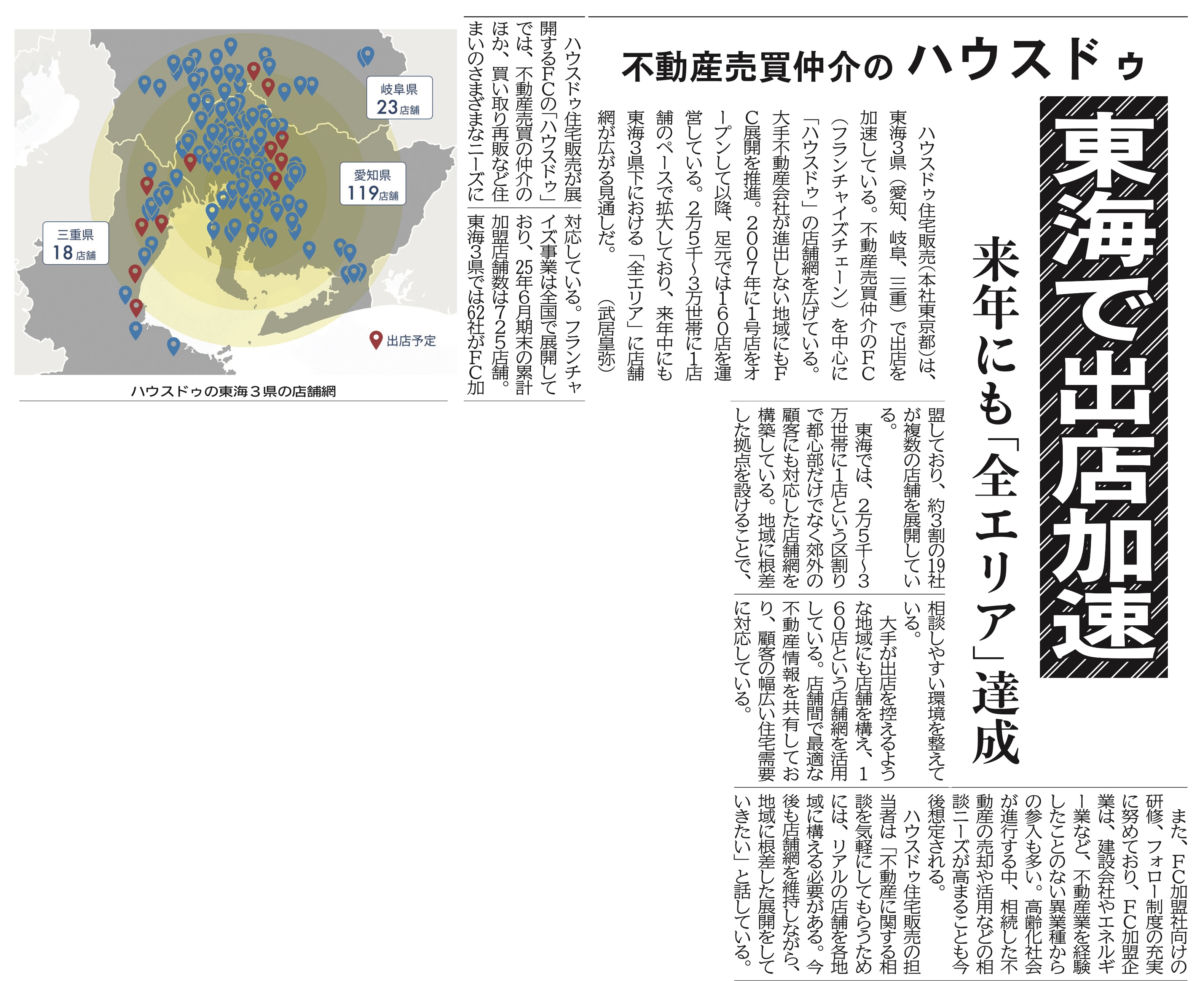 2025年11月20日号【中部経済新聞】にて、ハウスドゥの記事が取り上げられました。詳しくは、紙面をご確認ください。 【本件のお問い合わせ先】 株式会社ハウスドゥ住宅販売 フランチャイズ事務局 TEL:0120-411-123