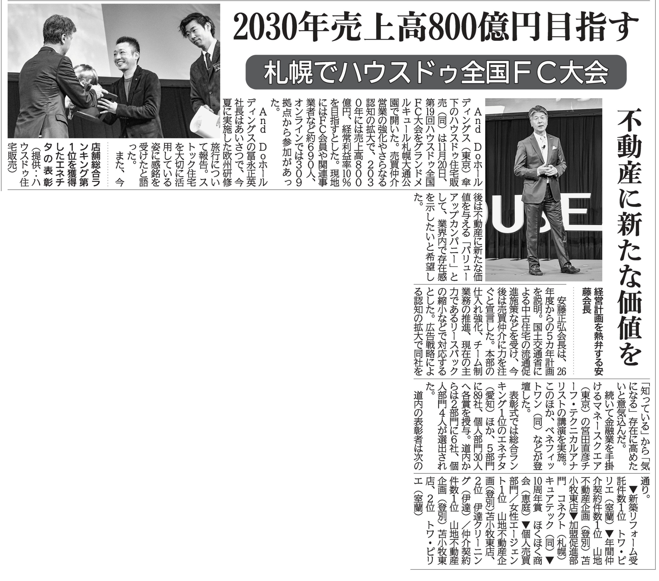 2025年12月1日号【北海道住宅産業新聞】にて、ハウスドゥの記事が取り上げられました。詳しくは、紙面をご確認ください。