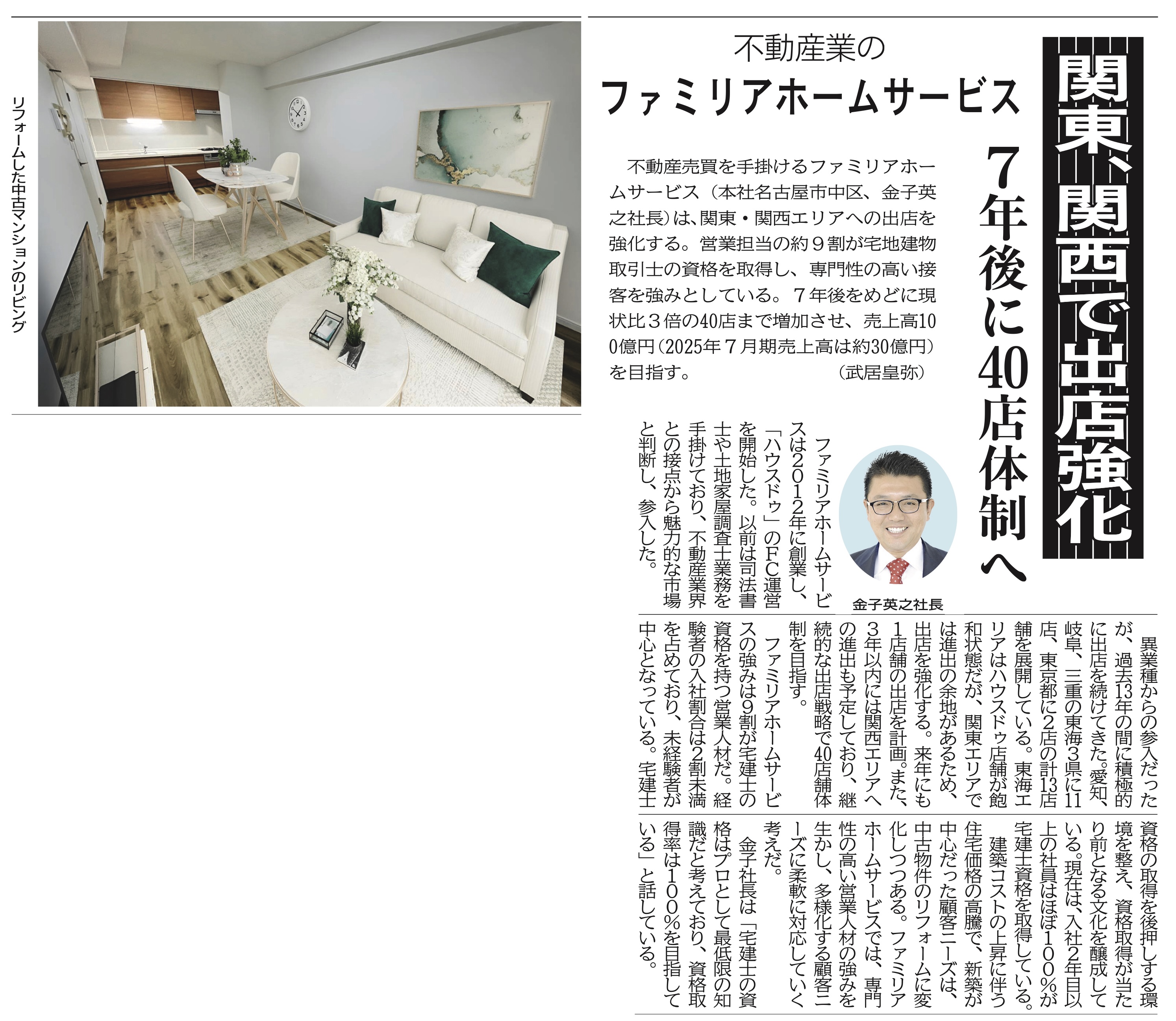 2025年12月8日号【中部経済新聞】にて、ハウスドゥ加盟店様の記事が取り上げられました。詳しくは、紙面をご確認ください。 【本件のお問い合わせ先】 株式会社ハウスドゥ住宅販売 フランチャイズ事務局 TEL:0120-411-123